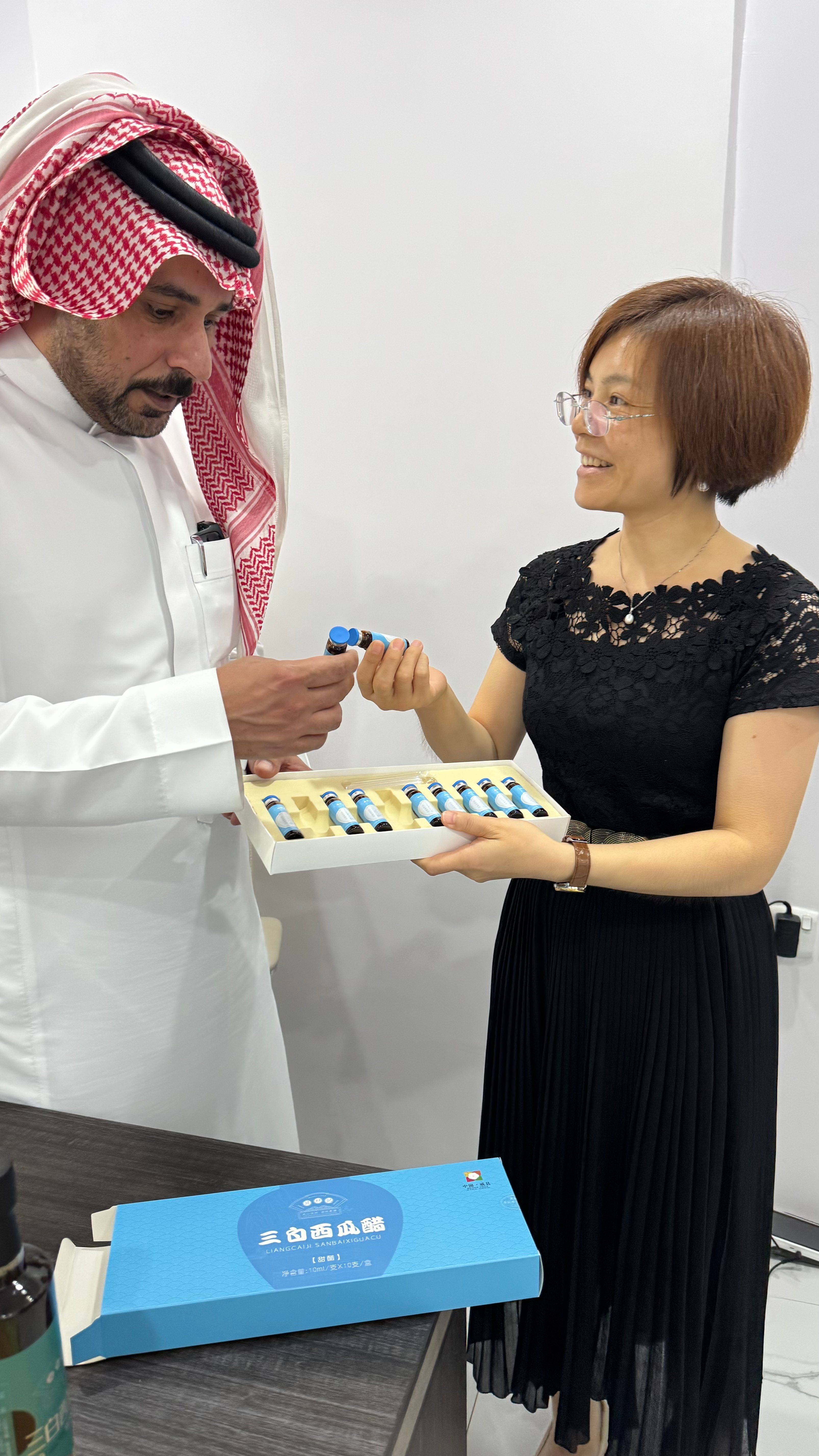 在考察当地电商平台时,考察团重点推介了来自中国威县的特色农产品——三白西瓜及其深加工系列产品,包括三白西瓜醋、碗装三白西瓜银耳羹和秋月梨醋。平台负责人现场品鉴三白西瓜醋后,当即称赞“Good!”,对产品品质给予高度认可,并表达了强烈的合作意向,为中国特色农产品打开沙特市场迈出了关键一步。